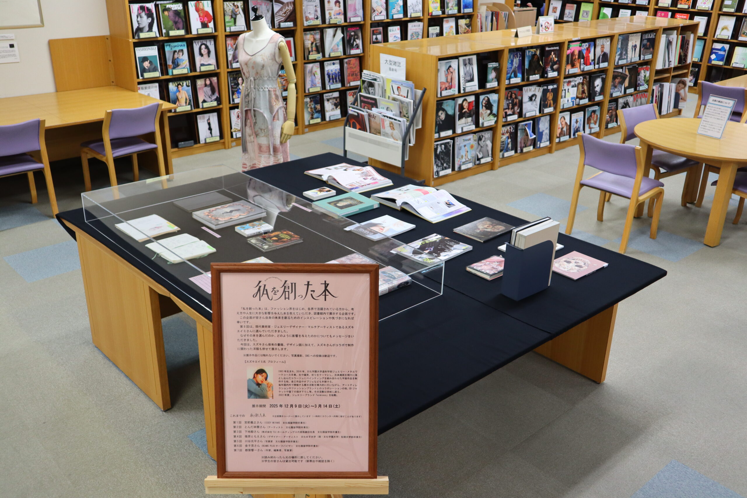 「私を創った本」は、ファッション界をはじめ、各界で活躍されている方から、考え方や人生に大きな影響を与えた本を教えていただき、図書館内で展示する企画です。