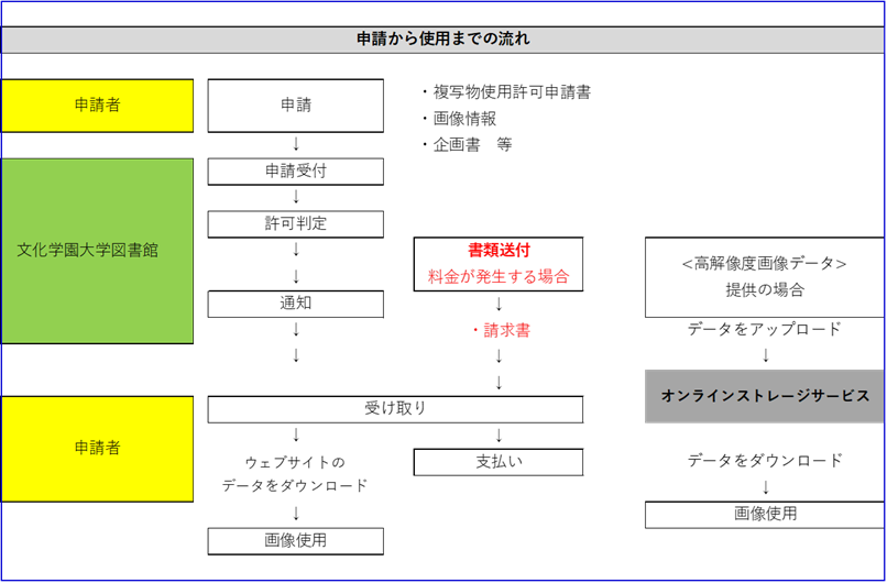 使用料 別表「文化学園大学図書館所蔵貴重書等 複製画像使用料一覧」参照